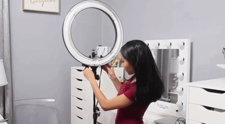 【INTELLIGENT AND QUICK COLOR CHANGE】 - Adjust the color temperature from 3200K to 5600K easily without using color filters and ring light have a wide brightness dimming range from 1%-100%. Achieve cold white light or warm light to hide blemishes and change skin tones quickly and easily.