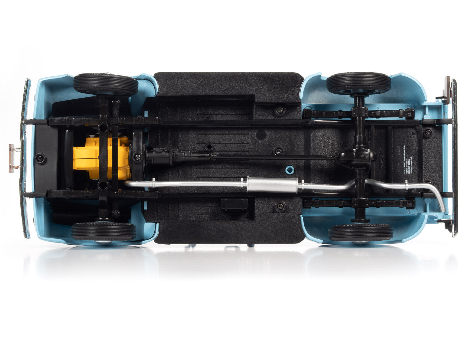 Auto World has perfectly replicated this 1956 Ford F-100 Stepside Pickup in 1:18 scale die-cast metal, painted in factory-matched Diamond Blue and adorned with brightwork including chrome bumpers and chrome hub caps. Under the hood is the highly-detailed Power King V8 engine.