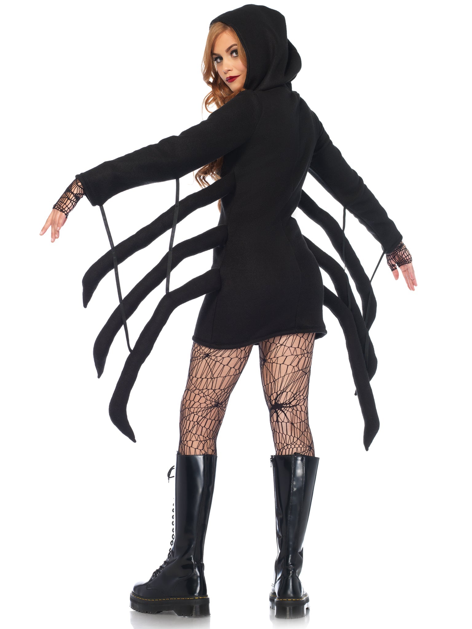 What a wicked web you weave! Get spooky cute in the ultra cozy spider costume by Leg Avenue. This hoodie dress is a fun women's costume that's sure to keep you toasty, featuring ultra-soft fleece with black widow detailing and multiple legs. Pair with fishnet tights or leggings for an easy Halloween costume look.