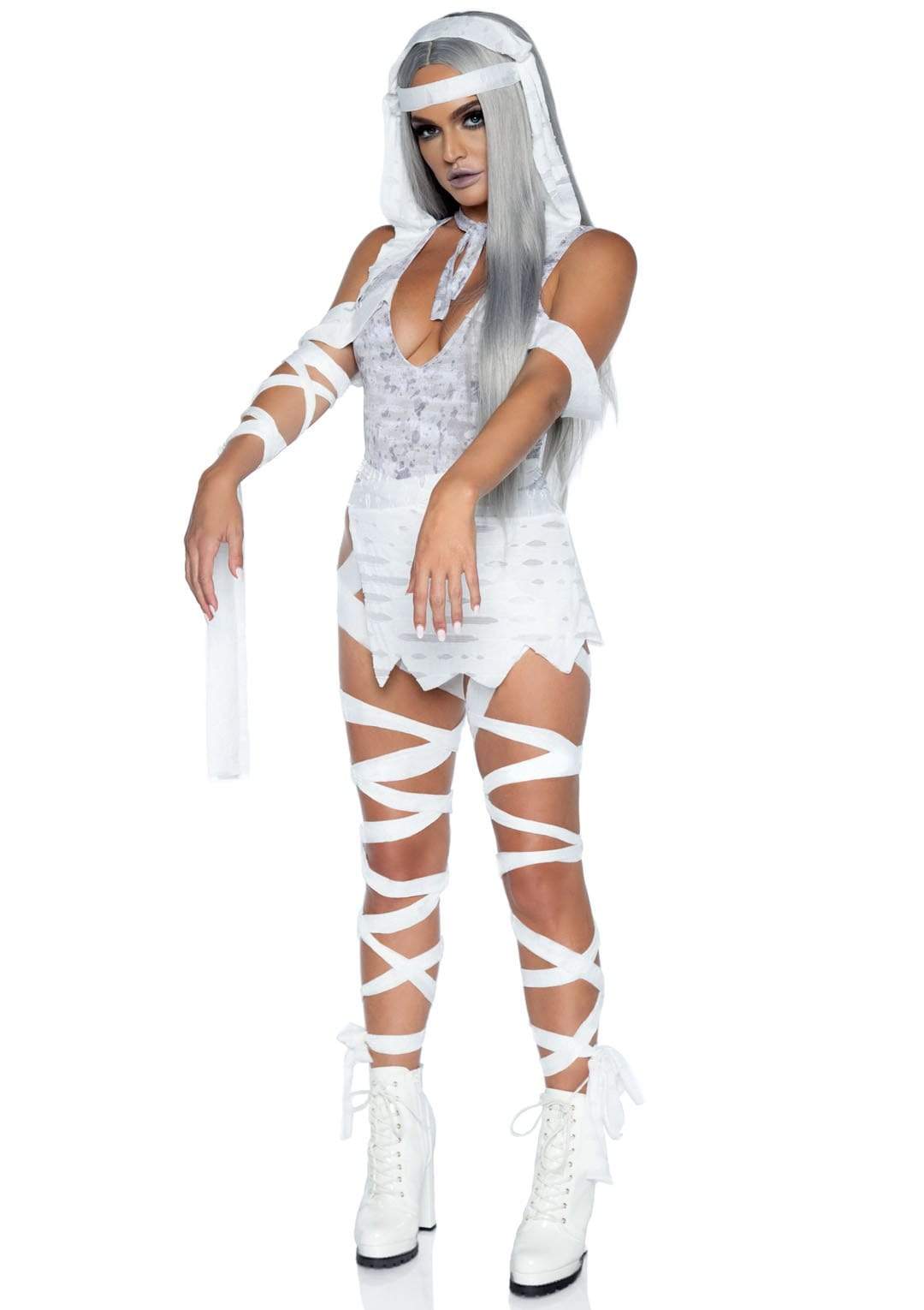 • FEATURES: Attached wraps on the sexy bodysuit make mummy wrapping scary easy.