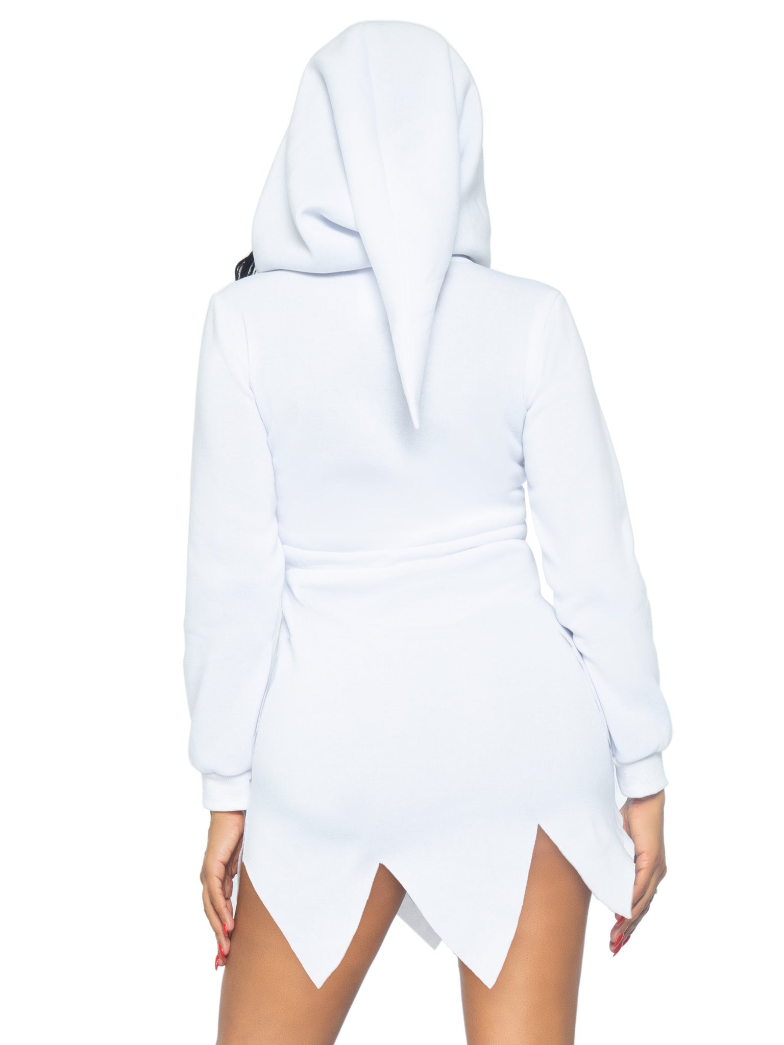 You’ll be the cutest ghoul this side of the graveyard in the spooky Leg Avenue Ghost Fleece Hoodie Dress. Snuggle up in the adorable fleece hoodie with ghost face design, triangle hem and drawstring waist.