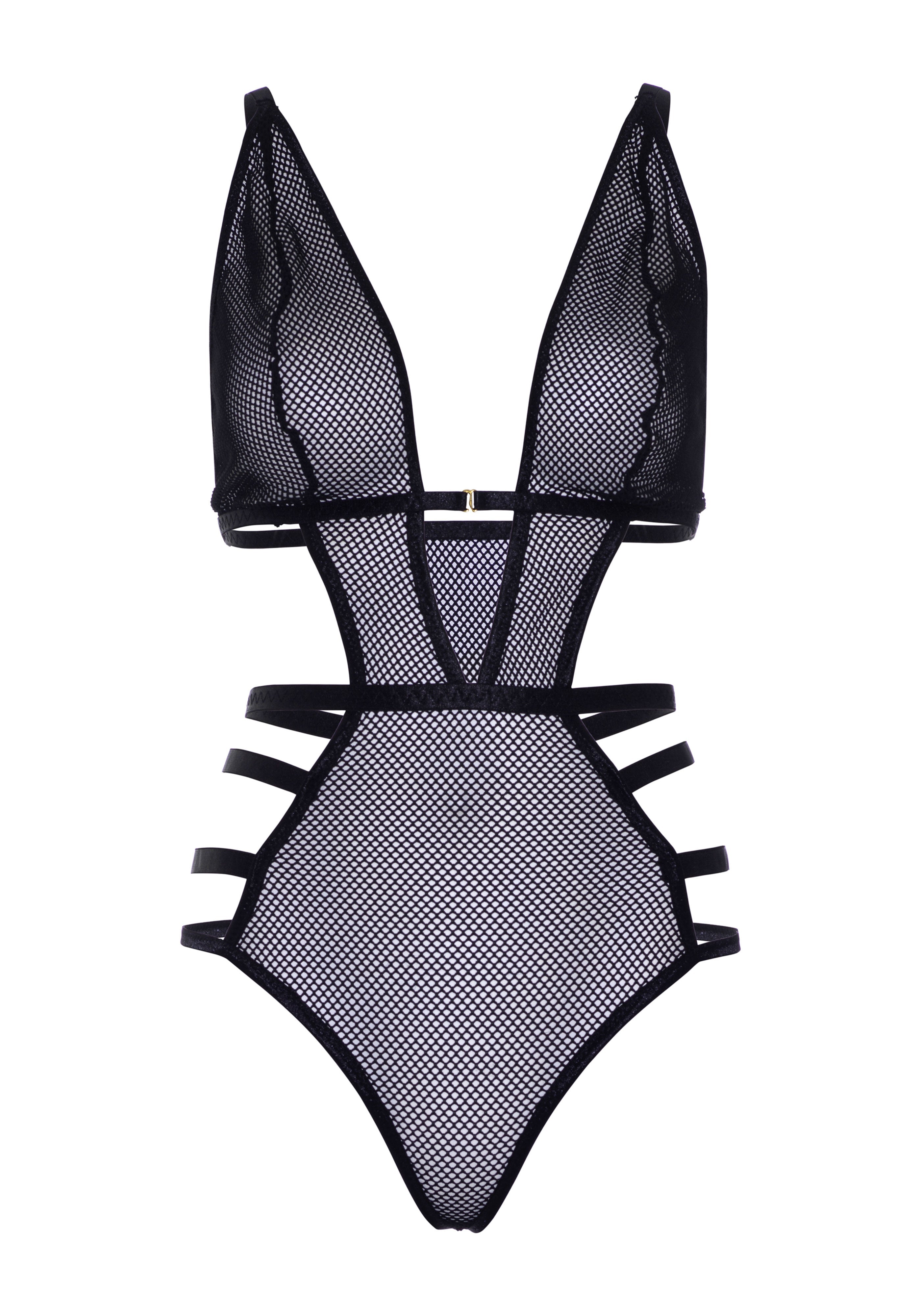 Turn heads in this ultra-sexy fishnet lingerie teddy by Leg Avenue, featuring a stunning cut-out design, strappy sides, plunging deep-v front, adjustable shoulder straps, and thong panty. This hot lingerie bodysuit takes you from the bedroom to sexy summer looks as a daring layering piece. Pair with thigh high stockings to take your look to the next level. (Panty not included)