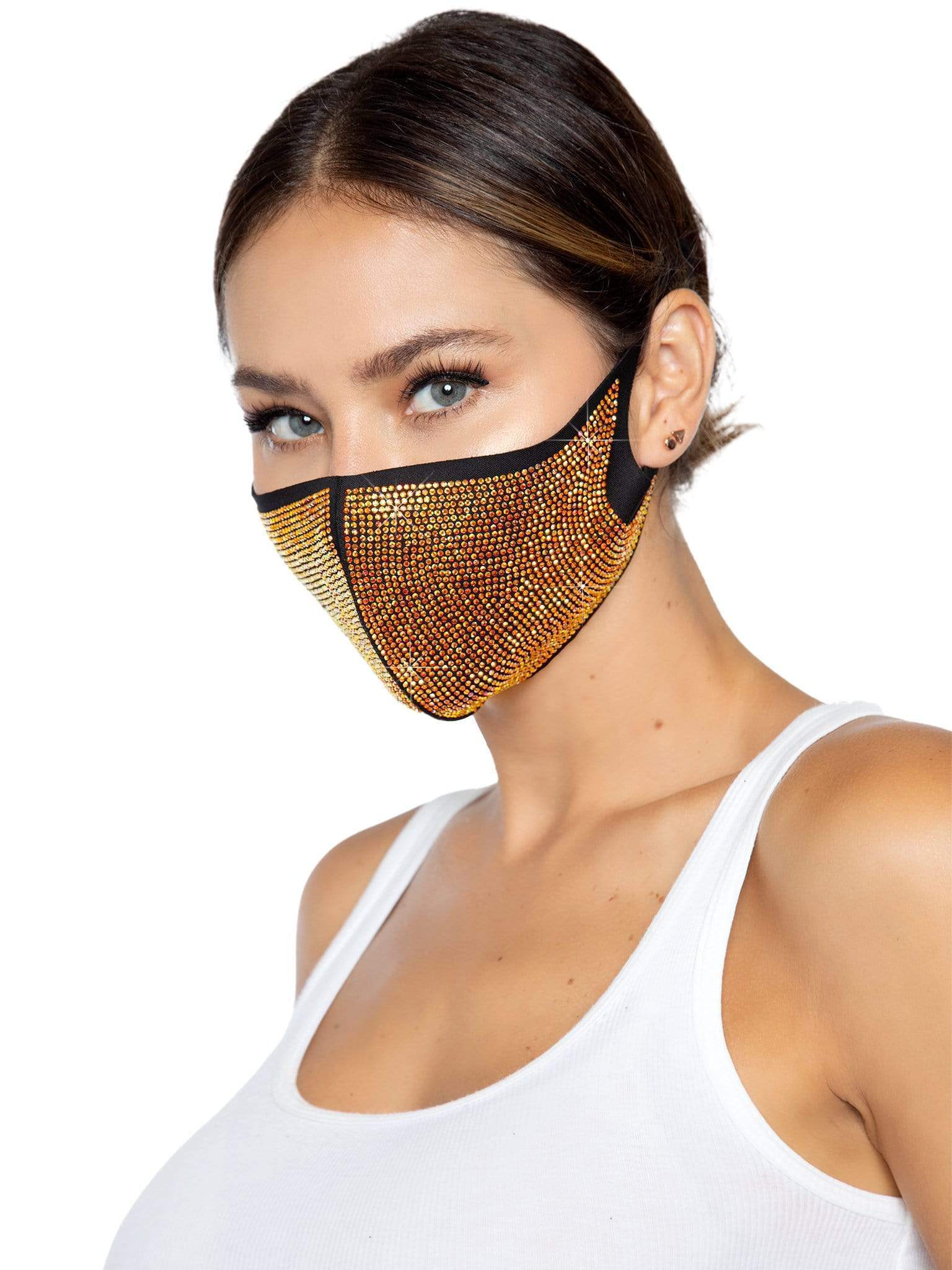 Stand out in the crowd with this gorgeous fashionable face mask, featuring iridescent rhinestones for an unforgettable look at the club, festival, rave, or paired with everyday looks.