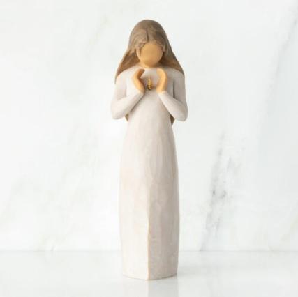 “I want this piece to be very personal to someone who has lost a loved one. The form is very simple, very pure. I think when someone dies, they’re still a part of you—they haven’t left you. Their essence lives within you and the memories that you shared keep them alive in your heart, like an inner light, a gift that glows from within. You feel it always, and you keep it safe. I hope this figure is a healing reminder, that positive energy and good things will continue to radiate from the spirit of one you love.” –Susan Lordi
