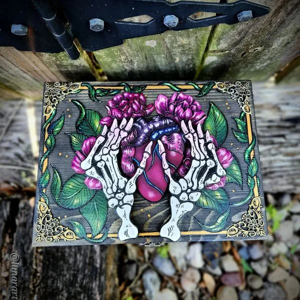Heart and Skelly hands Hidden Key box is a beautifully handcrafted organizer!