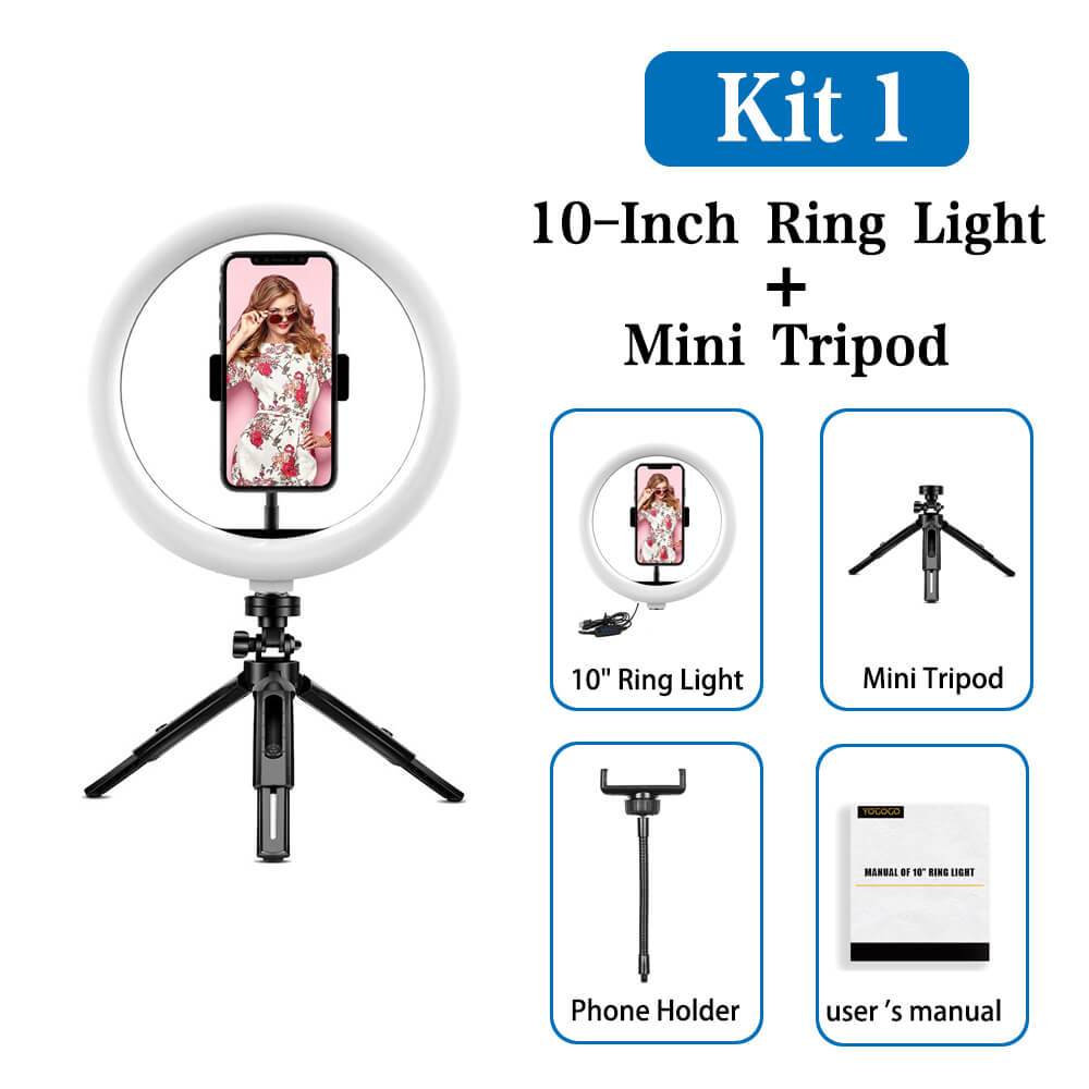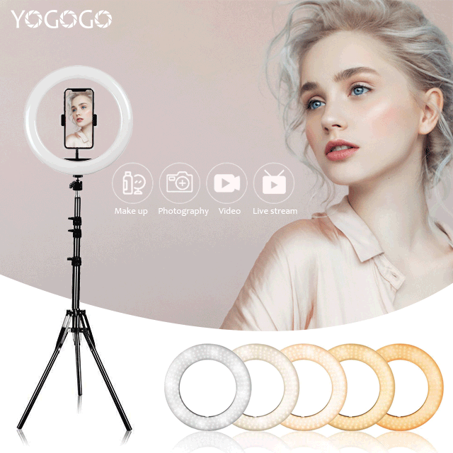 The ring light has 3 color temperature modes (white light, natural light, warm light), and has 10 levels of brightness adjustment. It can meet all your needs in different situations. It is the best helper for makeup, streaming, photography lighting, smartphone selfie, TikTok/YouTube video recording, etc.