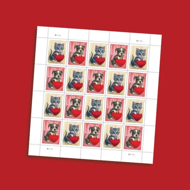 The U.S. Postal Service continues its popular Love series with two new stamps, one featuring a kitten and the other a puppy. Thestamp art was painted with oils on wood panel, then scanned and edited digitally to create the final images.