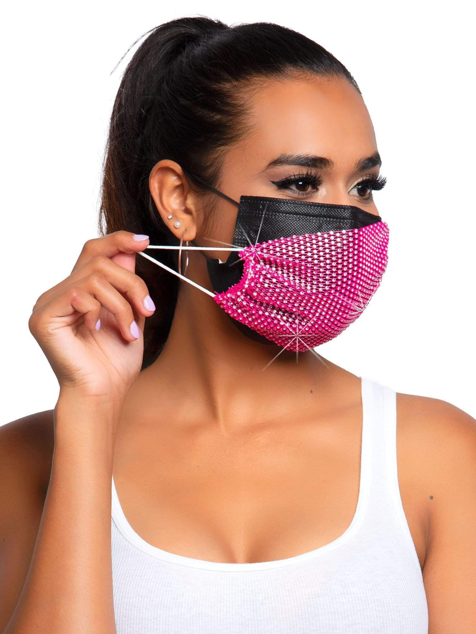 FIT & STYLE: This rhinestone fashion face mask cover for women features adjustable ear straps for ultra comfort and is perfect for everyday wear over a protective mask or as festival wear and rave gear.