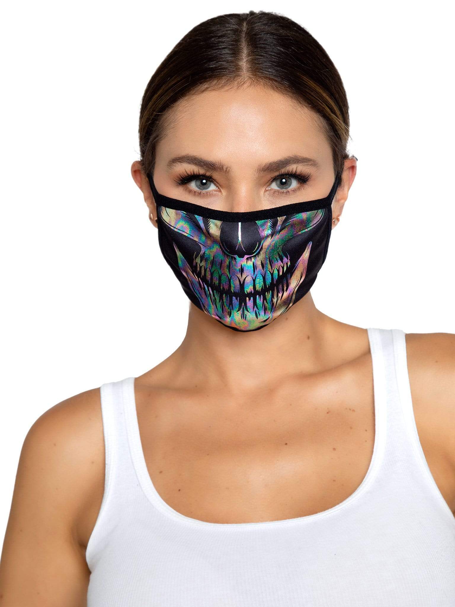 FIT & STYLE: This iridescent skull Halloween face mask features adjustable ear straps for ultra comfort and acts as a protective face mask for everyday wear or as festival wear and rave gear.