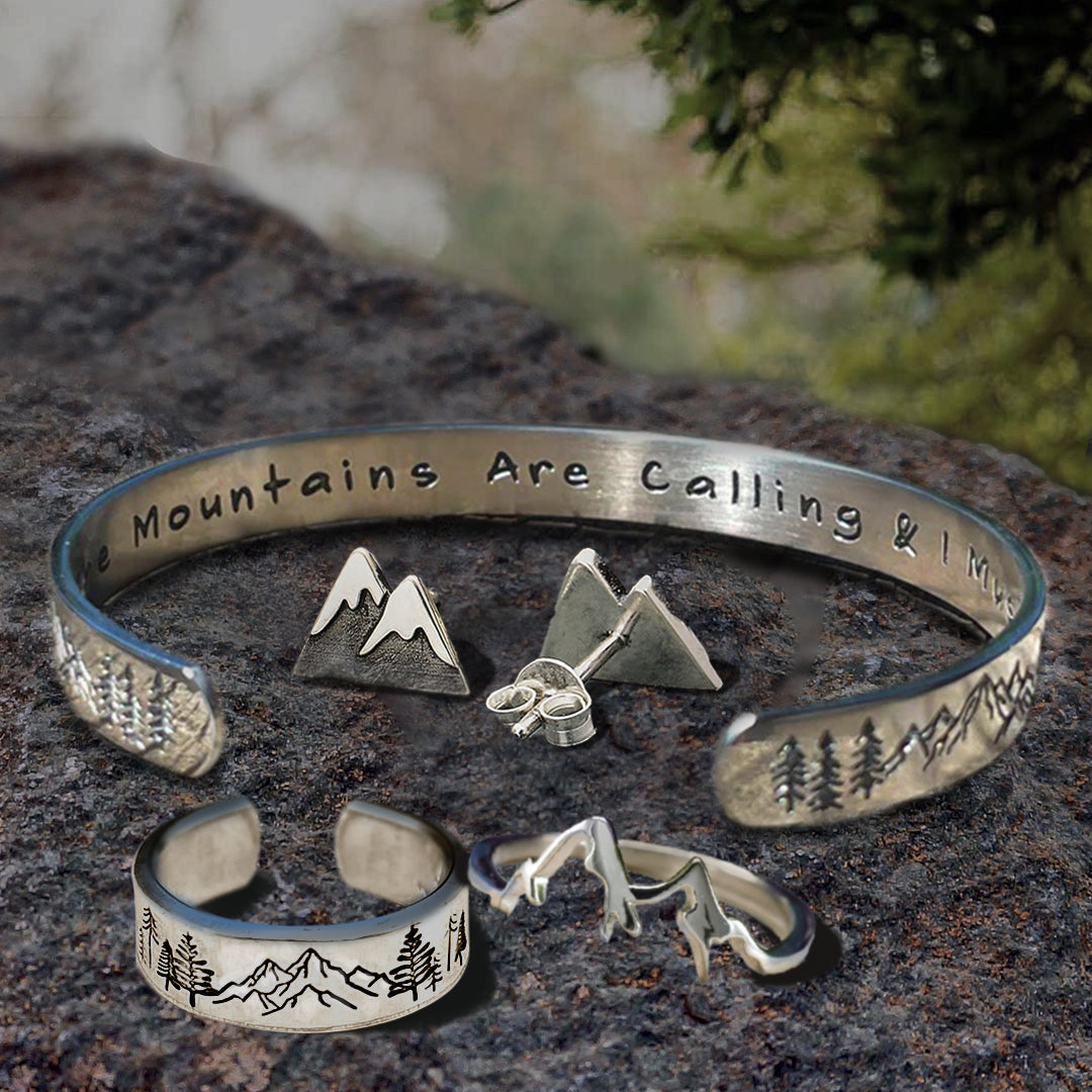 🌲 Mountain View Ring 🌲 The Mountains Are Calling Cuff 🌲 Snowy Mountain Earrings 🌲 Dainty Mountain Ring