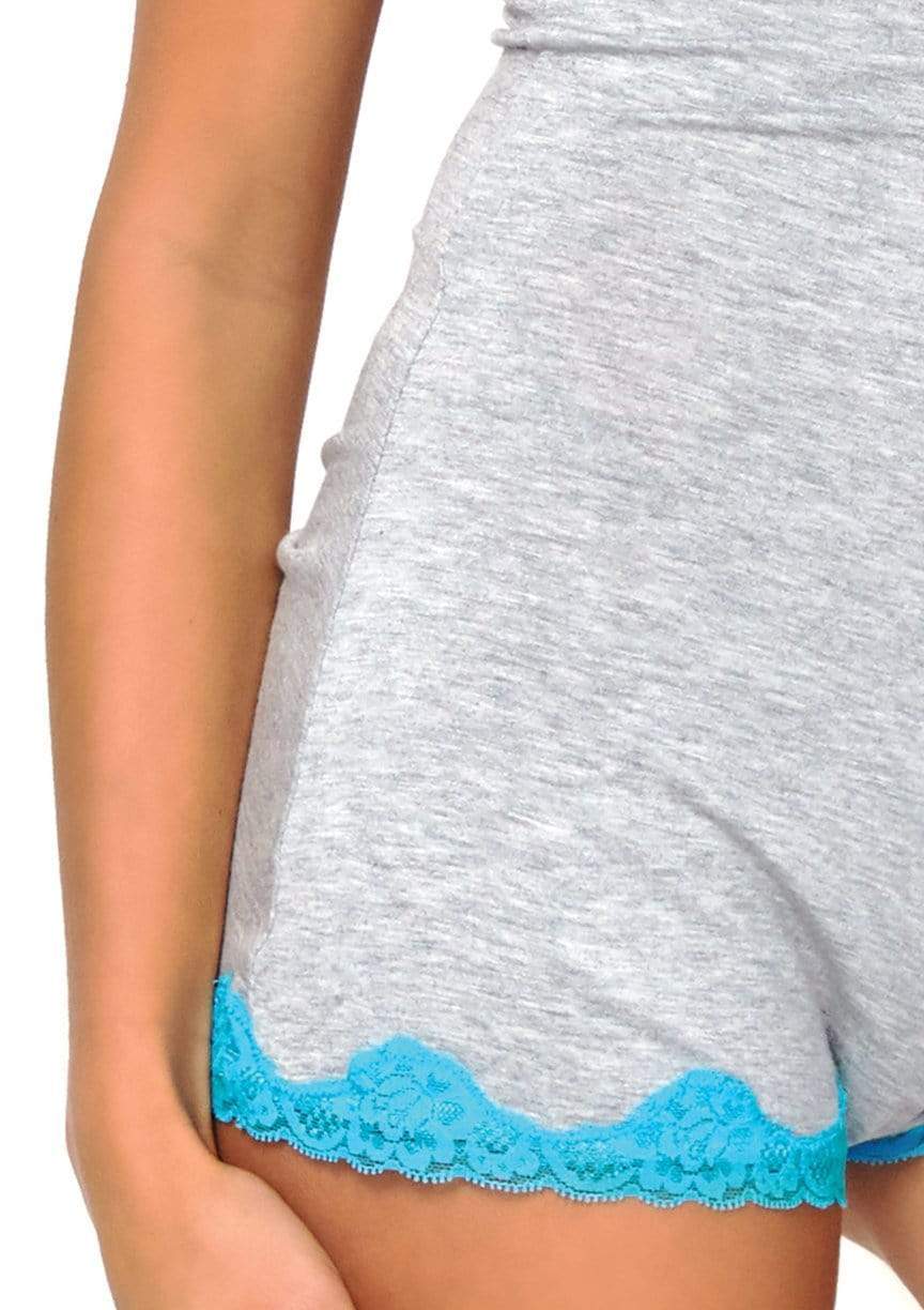 Cozy loungewear meets sexy women's sleepwear in this adorable romper pjs by Leg Avenue, featuring ultra soft brushed jersey fabric with lined lace cups, adjustable straps, and lace trimmed boyshort leg. Perfect for sleepovers and lazy Sunday mornings, this cute sleepwear look will definitely have you wanting to stay in bed.