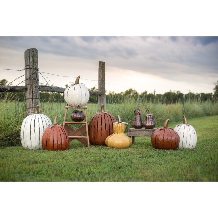 Light up the autumn evening with this versatile squatty pumpkin luminary from Desert Steel. Measuring 14 in. W x 15 in. H, this creative take on the classic fall gourd was individually crafted by hand for detail and quality. Made from galvanized steel, this stunning luminary is maintenance-free and rust-resistant, even near saltwater. The two-toned, powdered coated finish on both the inside and outside delivers a unique twist on the traditional jack o' lantern. The striking interior color emits an eye-catching, beautiful orange glow when lit at night with a candle or light. Place a citronella candle inside to keep pests at bay or illuminate patios and walkways with some holiday spirit. Use this luminary indoors or outdoors. Requires simple hand assembly with a screwdriver.