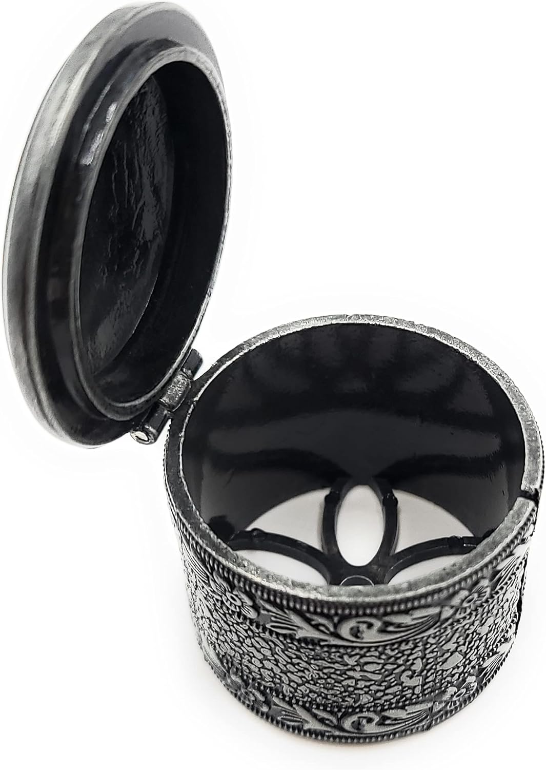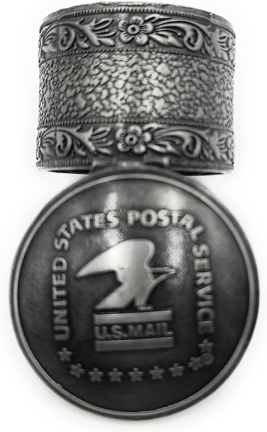 This metal rolled stamp dispenser with delicate floral accents makes it easy to store your rolled stamps. Holds up to 100 rolled stamps. It also decorates your desk or workspace.
