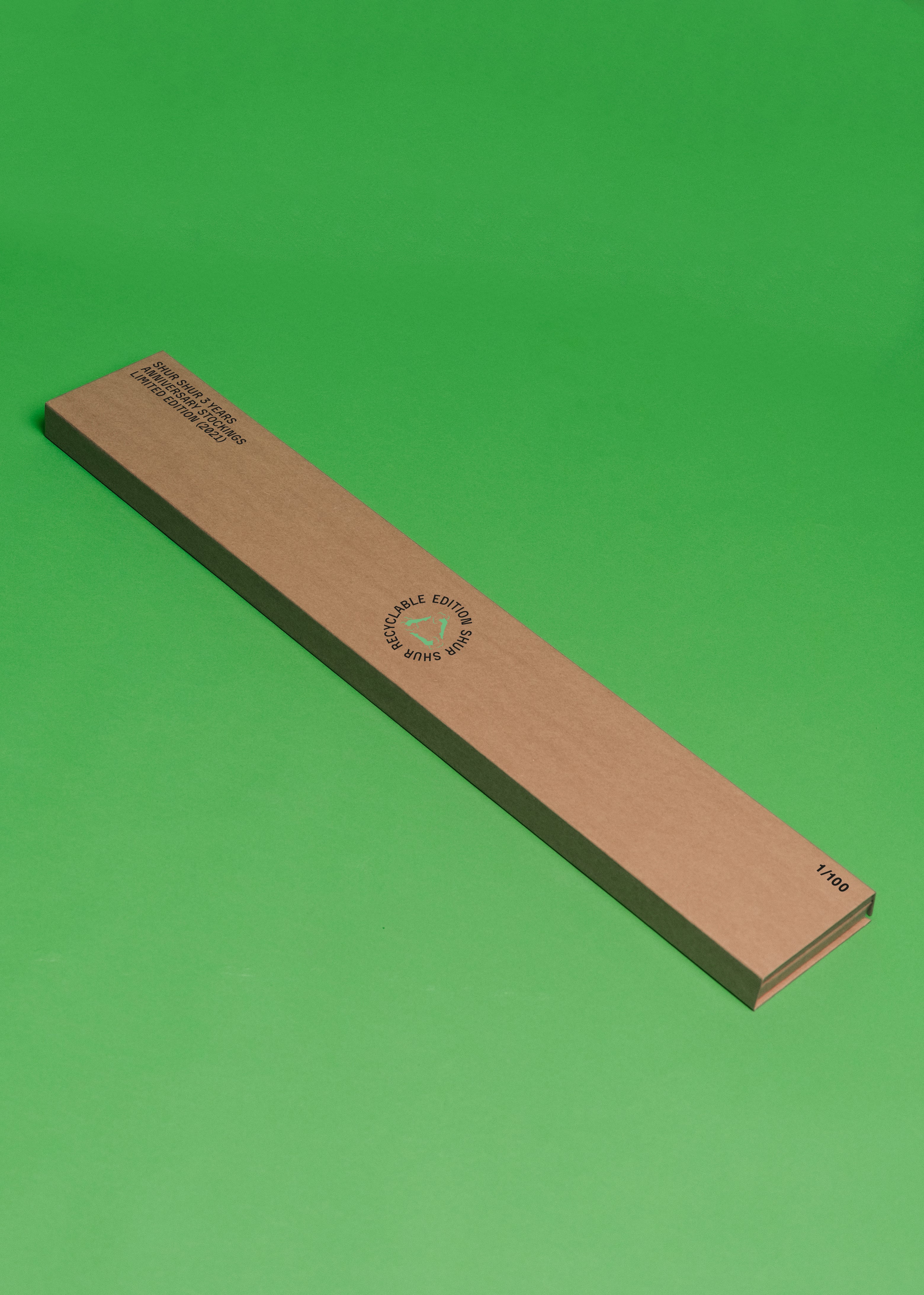 The 2021 collection feature is a new interpretation of the Shur Shur logo with a reference to the famous Recycling sign.