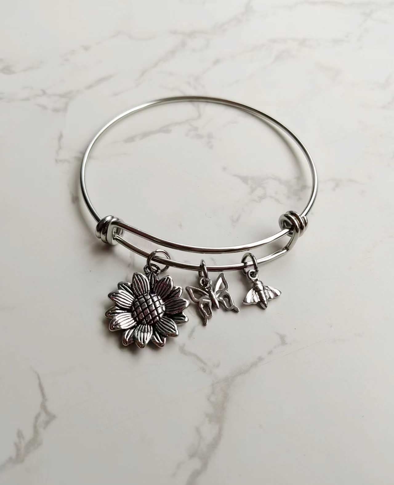 🌲 Sunflower Charm Bangle Bracelet 🌲