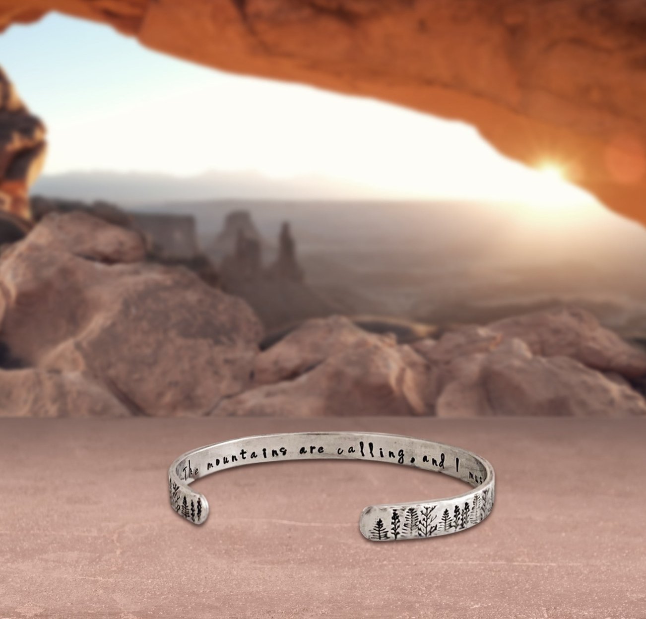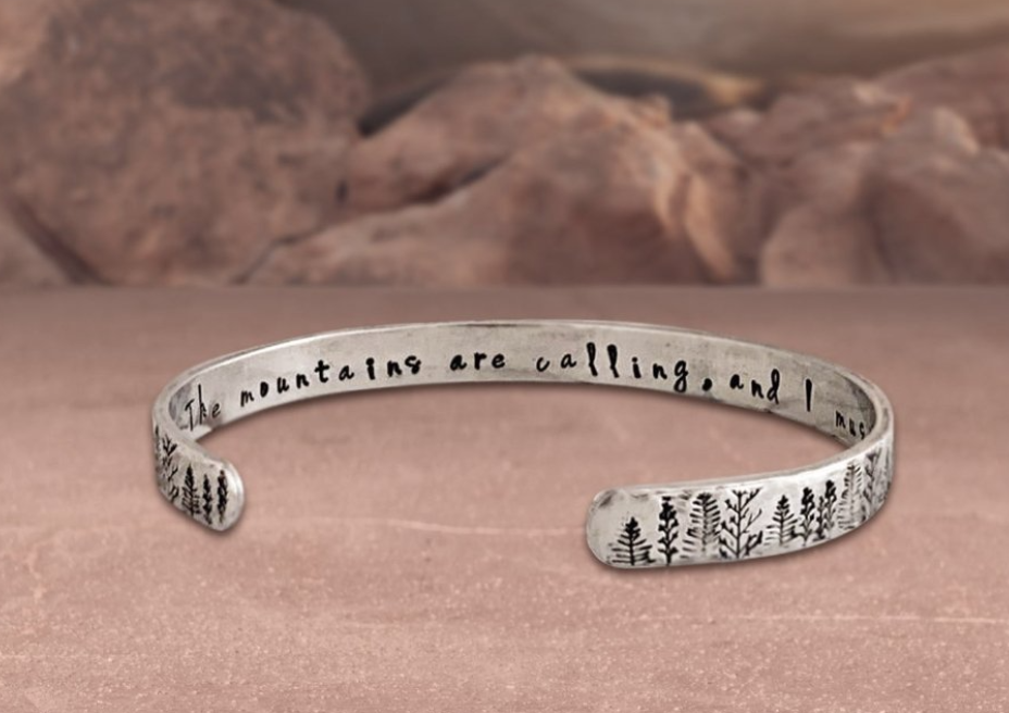 🌲Inscription reads - "The Mountains Are Calling & I Must Go" In Beautiful Rustic Stamping ❤️